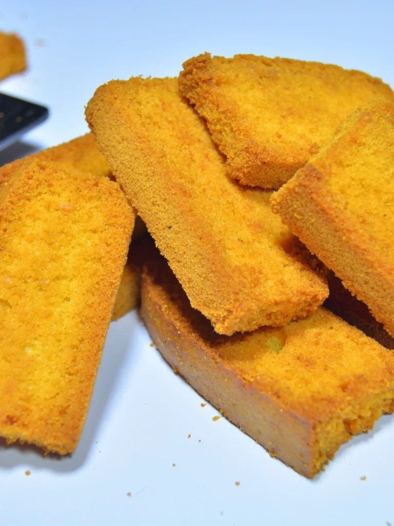 Cake Rusk is a popular tea-time snack. These are crisp, golden slices of cake, baked twice to get a crunchy texture similar to biscotti. Often enjoyed dipped in tea or coffee, cake rusks are sweet, light, and addictive.