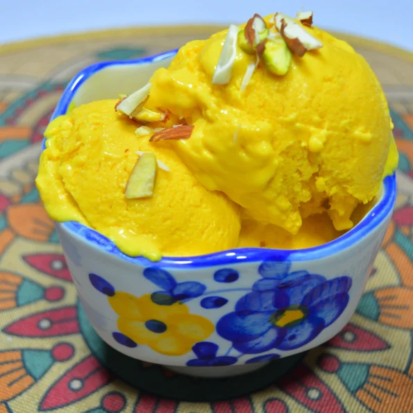 Scoop and enjoy your creamy, all-natural mango ice cream!