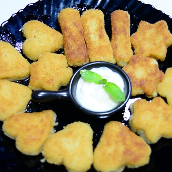Heat oil in a deep pan to 180°C. Fry nuggets in small batches until golden brown and crispy (about 3–4 minutes).