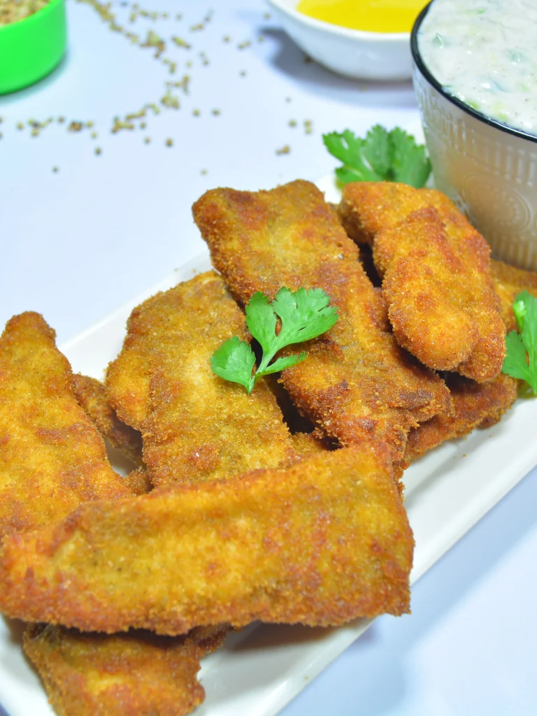 Finger Fish Fry is a popular seafood appetizer made with boneless fish strips marinated in spices and coated with flour or breadcrumbs before deep frying. Crunchy on the outside and tender inside, it's a perfect choice for parties, evening snacks, or a side dish with meals.