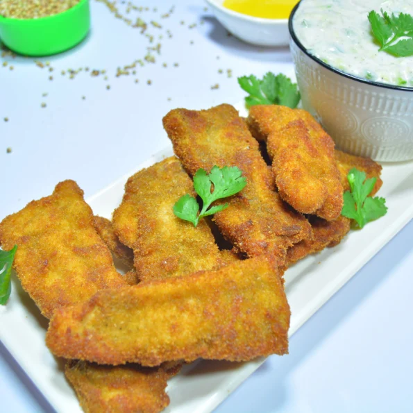 Finger Fish Fry is a popular seafood appetizer made with boneless fish strips marinated in spices and coated with flour or breadcrumbs before deep frying. Crunchy on the outside and tender inside, it's a perfect choice for parties, evening snacks, or a side dish with meals.
